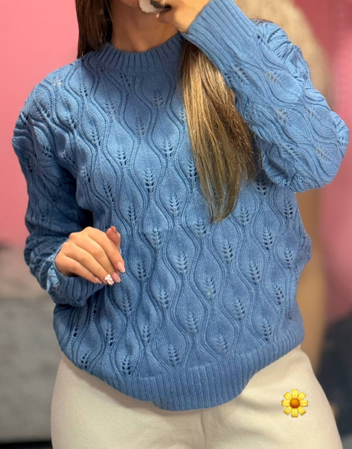 Suéter tejido, con diseño trenzado que aporta textura y elegancia. Ideal para un look casual o sofisticado, cómodo y perfecto para climas frescos.