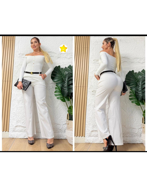 Hermoso conjunto 2 piezas, blusa con resorte y pantalón tiro alto