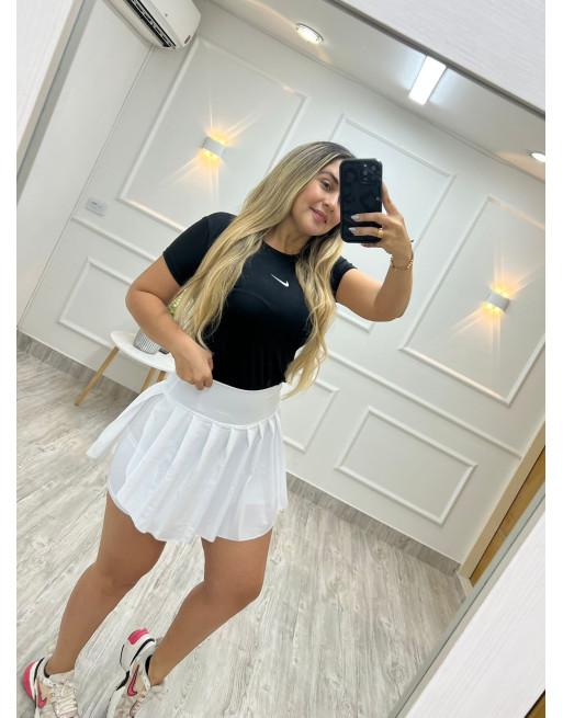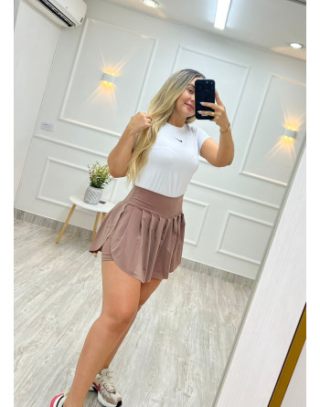 Falda Pegi con pliegues, pretina ancha y lycra con porta celular. Disponible en talla única. Excelente calidad