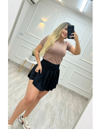 La Falda Pegi combina comodidad, estilo y funcionalidad. Su diseño con pliegues aporta movimiento y una caída favorecedora, mientras que la pretina ancha brinda soporte y define la cintura. Incluye un práctico porta celular que la hace perfecta para salidas, uso diario o actividades ligeras.