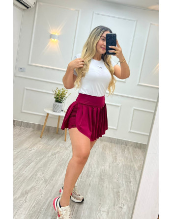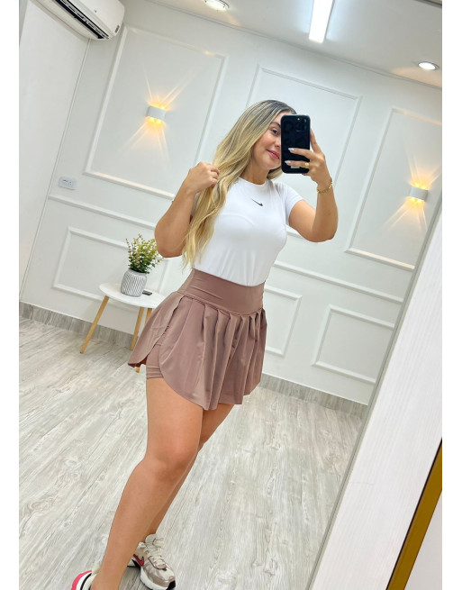 Hermosa falda en pliegues, pregonada ancha y licra con porta celular