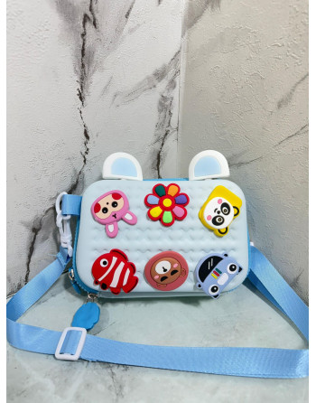 ¡Dulce, divertido y lleno de color! 🌈🦋 Este hermoso carriel está elaborado en material de silicona, suave, resistente y muy fácil de limpiar 💕. Su diseño redondeado viene decorado con apliques infantiles en relieve.