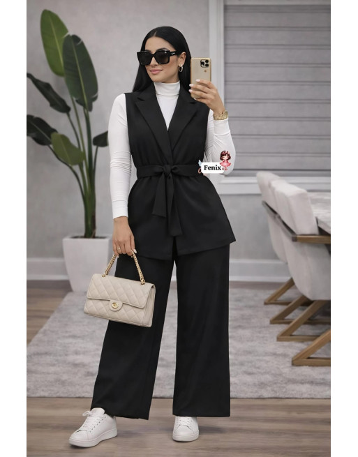 conjunto 2 piezas, chaleco tipo blazer y pantalones tiro alto